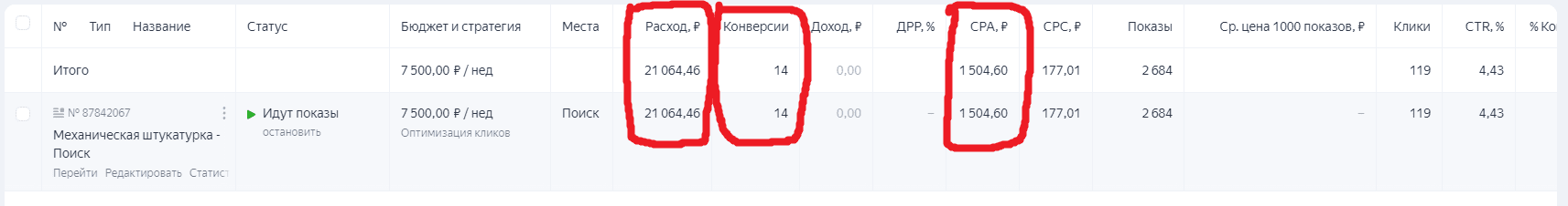 РЕЗУЛЬТАТ: в течение 3 недель показа рекламы – 14 конверсий на сайте, из них 8 были закрыты на сделку.